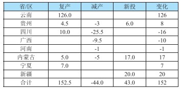 2024年復(fù)產(chǎn)產(chǎn)能152.5萬(wàn)噸/年,主要分布在云南、貴州和四川等省/區(qū),復(fù)產(chǎn)產(chǎn)能主要來(lái)自于2023年因電力短缺而關(guān)停重啟的產(chǎn)能,還有一小部分來(lái)自于技改后投放的項(xiàng)目。2024年,云南來(lái)水偏豐,水電發(fā)電量大幅增長(zhǎng),風(fēng)電、光伏等新能源項(xiàng)目投用進(jìn)度加快,火電機(jī)組應(yīng)開(kāi)盡開(kāi),電力供給有效提升;同時(shí)鋁以外的部分其它產(chǎn)業(yè)用電量有所下滑,也在一定程度上緩解了前幾年省內(nèi)電力供應(yīng)持續(xù)緊張的壓力。云南自3月起全面放開(kāi)負(fù)荷管理,省內(nèi)電解鋁企業(yè)迅速?gòu)?fù)產(chǎn),7月份運(yùn)行產(chǎn)能達(dá)到578萬(wàn)噸/年的歷史最高水平,且下半年一直保持該生產(chǎn)能力,為電解鋁產(chǎn)量貢獻(xiàn)了較大增量。此外,雙碳目標(biāo)實(shí)施以來(lái),電解鋁行業(yè)節(jié)能降碳訴求愈發(fā)強(qiáng)烈,尤其是在階梯電價(jià)、電解鋁行業(yè)節(jié)能降碳計(jì)劃等相關(guān)政策的壓力下,降碳更是企業(yè)迫在眉睫的發(fā)展戰(zhàn)略,因而圍繞槽型大型化、石墨化陰極、智能化管理等方面而展開(kāi)的電解槽升級(jí)改造項(xiàng)目越來(lái)越多。貴州、四川等省/區(qū)部分技改項(xiàng)目陸續(xù)投產(chǎn),但由于投產(chǎn)時(shí)的生產(chǎn)成本較高,投放進(jìn)度相對(duì)緩慢。