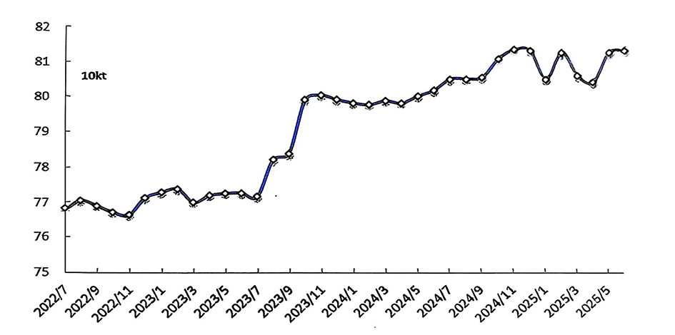 經(jīng)調(diào)整,6月份產(chǎn)量為364.5萬噸預計7月份產(chǎn)量為376.9萬噸,同比增長1.5%,日均產(chǎn)量12.16萬噸,環(huán)比小幅增長0.07%
