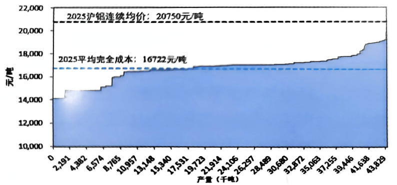 根據(jù)安泰科測算,2025年中國電解鋁加權(quán)平均完全成本(含稅)16722/噸,較上年下降5.6%995/;全年噸鋁平均利潤約為4028(由于各地區(qū)企業(yè)所得稅稅率不同,故沒有剔除增值稅和所得稅),創(chuàng)歷史新高,較上年增加80.8%1801元。